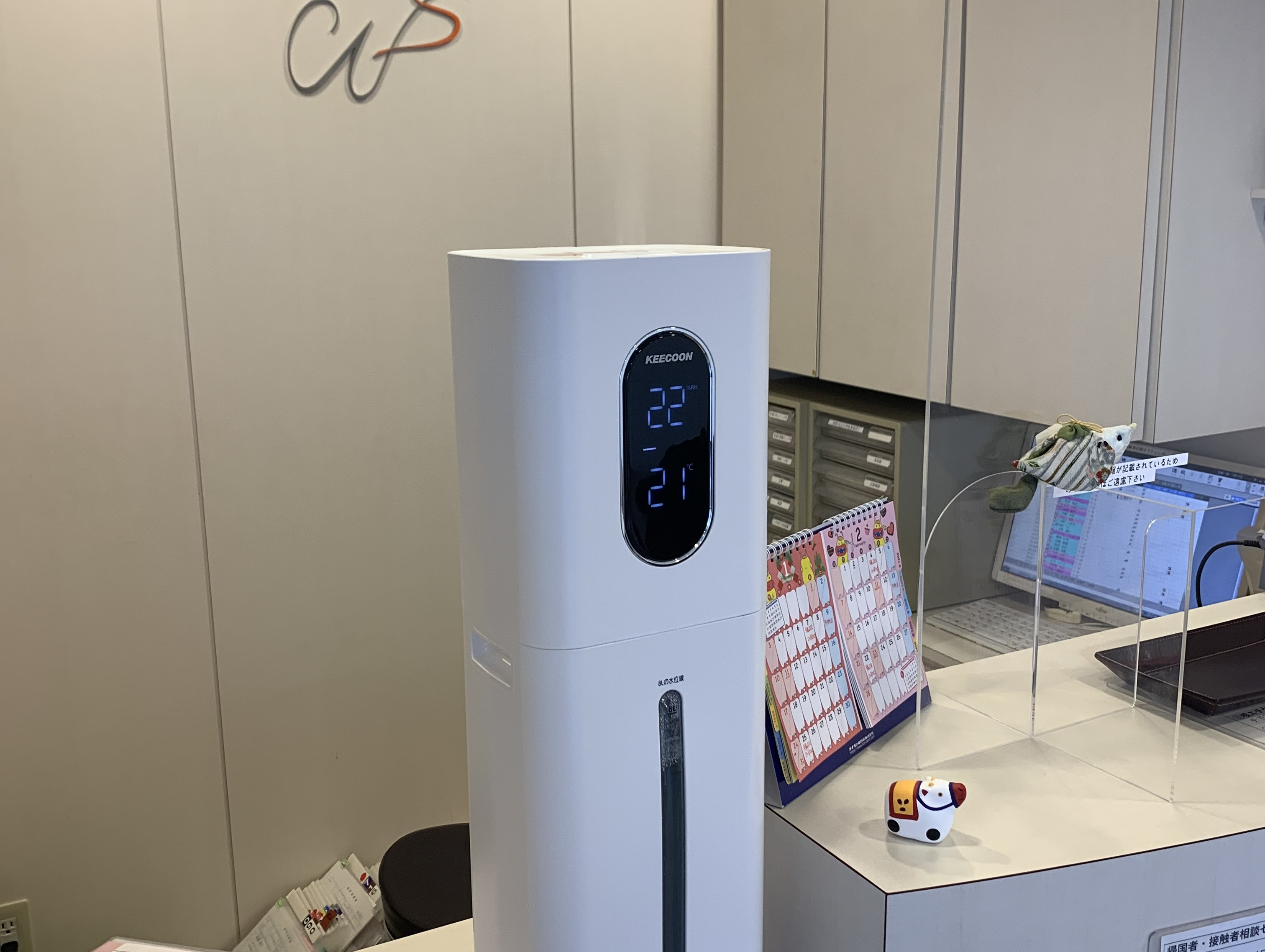 待合室ではスペースシャトルに搭載されたPCO技術でウイルス・有害物質を分解するairocideASP200を採用し、空気中のウイルスより微細な粒子まで除去しております。