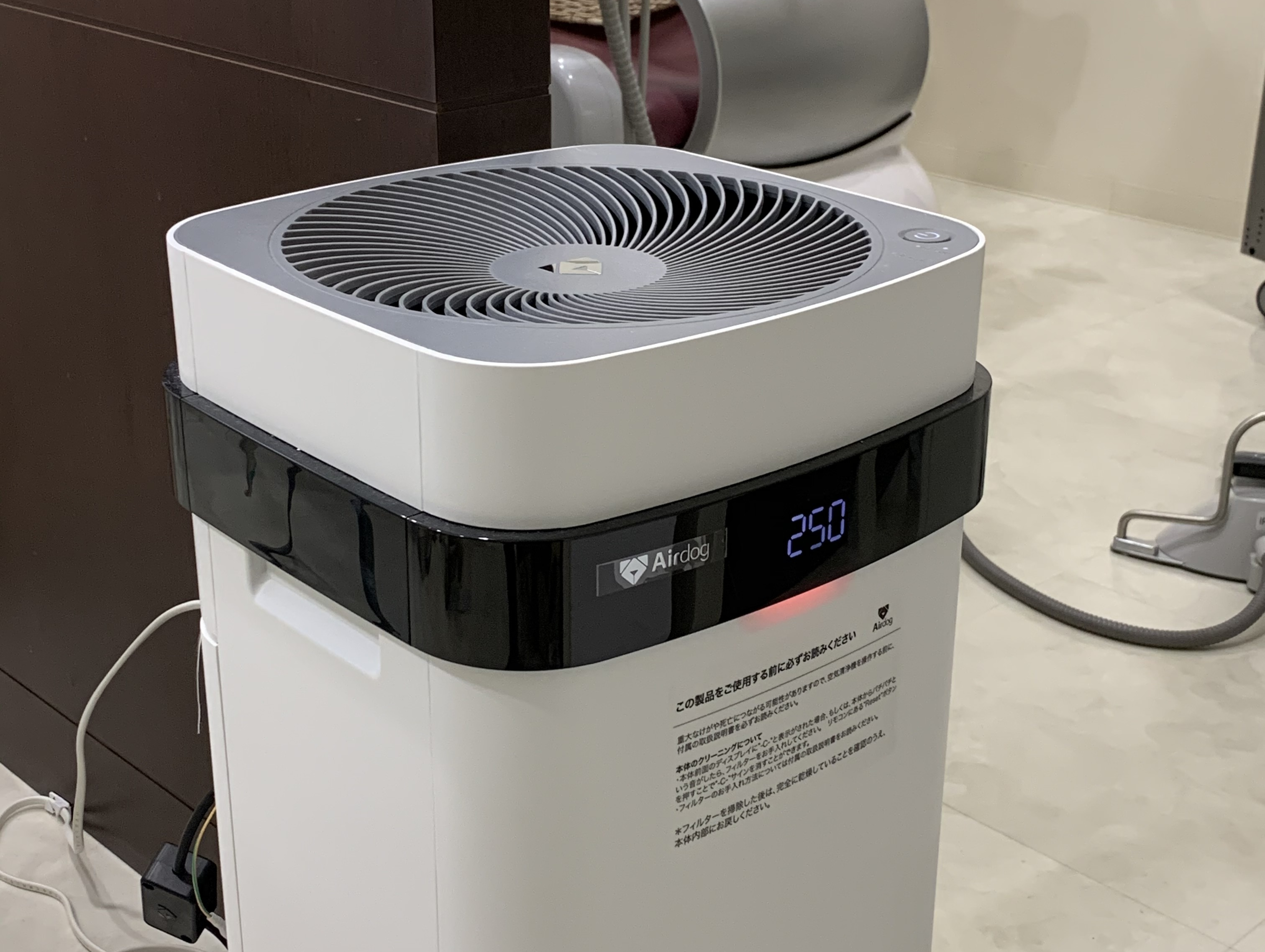 診療室では強力な集塵性能とHEPAフィルターより最新のTPAフィルター搭載の空気清浄機AirdogX5s、
